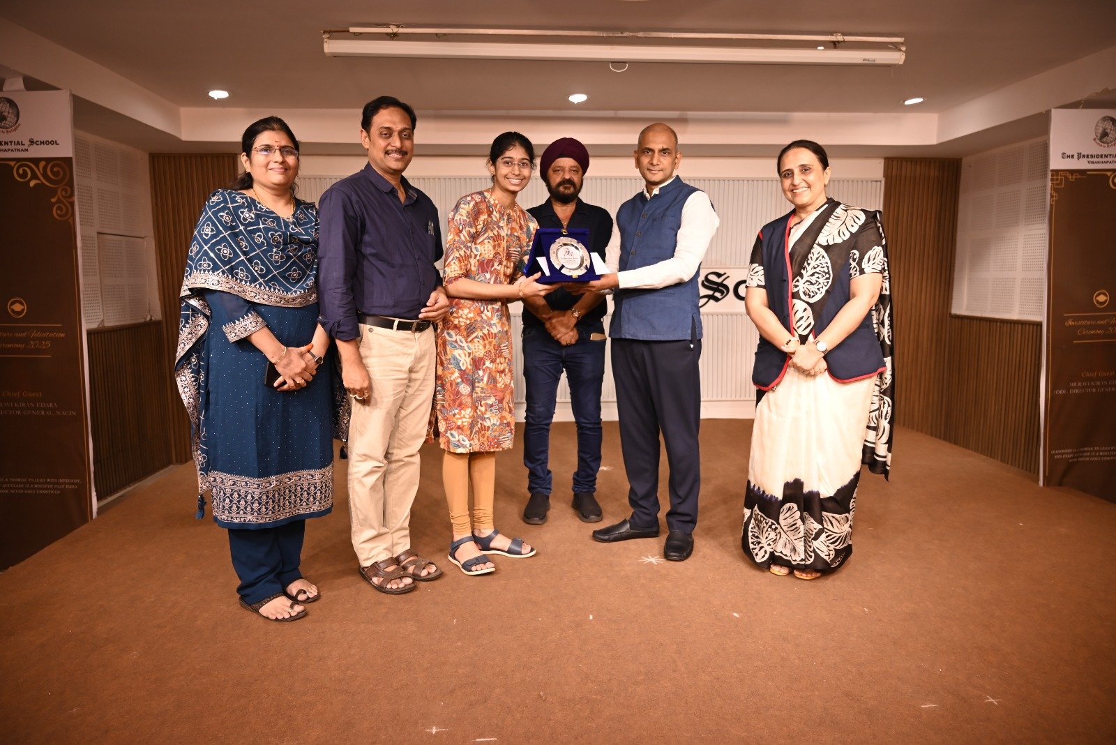 Paidi Anvitha, a student of The Presidential School, achieved an outstanding score of 494 in Grade X-CBSE. Her dedication and consistent efforts reflect her academic excellence. She is an inspiration to her peers, showcasing remarkable potential and discipline. The school proudly celebrates her success and supports her continued journey to excellence.